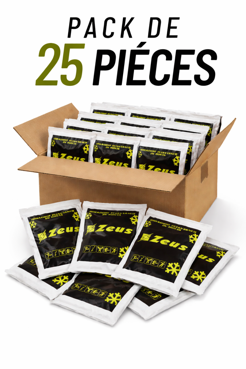 Le pack de 25 poches de froid instantané Zeus est idéal pour soulager rapidement les douleurs, chocs et blessures musculaires. Faciles à utiliser, ces compresses froides à activation instantanée ne nécessitent ni congélateur ni préparation : il suffit d’appuyer pour déclencher le froid immédiatement.
